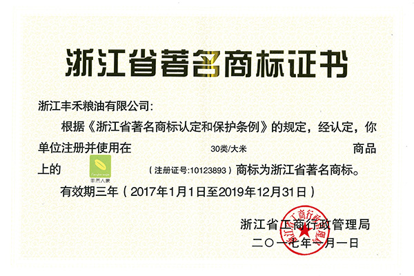浙江省著名商標(biāo)證書