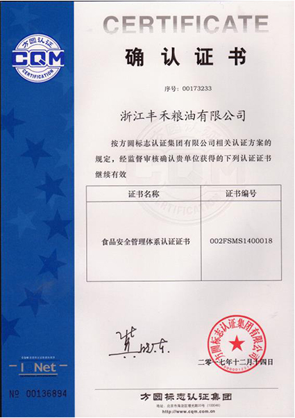 食品安全管理體系認(rèn)證證書確認(rèn)證書
